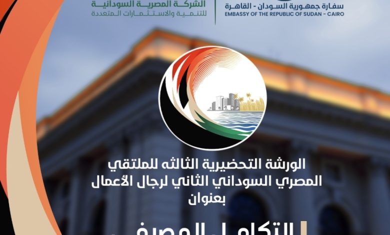 تنطلق فعاليات الورشة التحضيرية الثالثة للملتقى المصري السوداني لرجال الأعمال في نسخته الثانية، يوم الإثنين القادم 24 نوفمبر الجاري، حول “التكامل المصرفي بين مصر والسودان… الفرص والتحديات”، وذلك تحت رعاية السفارة السودانية بالقاهرة، والشركة المصرية السودانية للتنمية والاستثمارات المتعددة، وبحضور عدد من المسؤولين والخبراء ورجال الأعمال من البلدين.