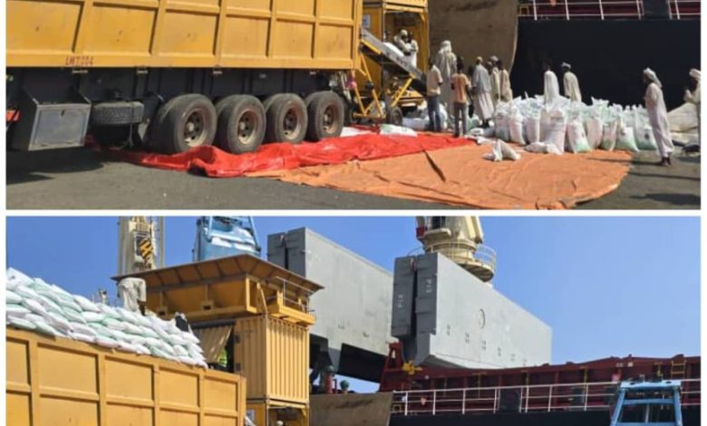 تم البدء في تفريغ باخرة سماد اليوريا والداب، بميناء بورتسودان والشروع فورا في عمليات الترحيل إلى فروع البنك الزراعي بولاية الجزيرة لتمويل المزارعين وفق الجدول الزمني المحدد.