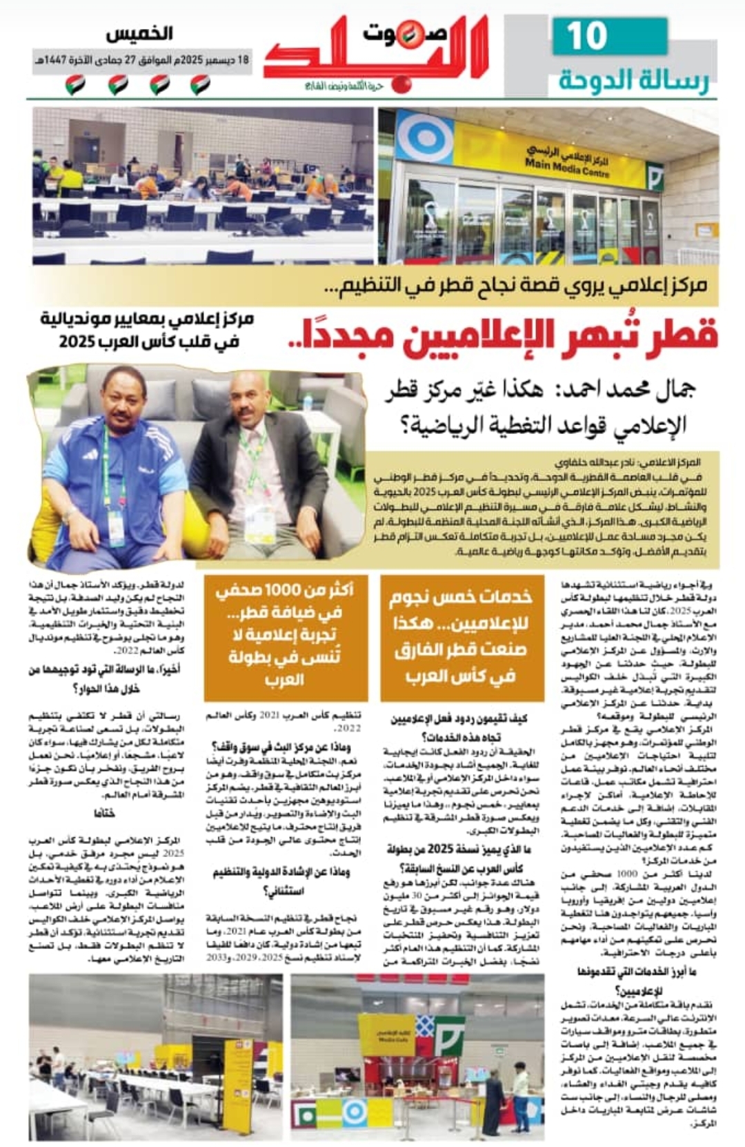 المركز الإعلامي لبطولة كأس العرب 2025 ليس مجرد مرفق خدمي، بل هو نموذج يُحتذى به في كيفية تمكين الإعلام من أداء دوره في تغطية الأحداث الرياضية الكبرى. وبينما تتواصل منافسات البطولة على أرض الملاعب، يواصل المركز الإعلامي خلف الكواليس تقديم تجربة استثنائية، تؤكد أن قطر لا تنظم البطولات فقط، بل تصنع التاريخ الإعلامي معها.