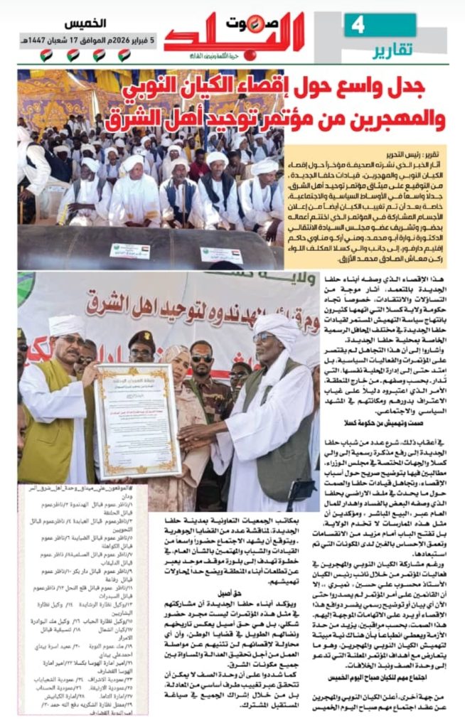 ويؤكد أبناء حلفا الجديدة أن مشاركتهم في مثل هذه المؤتمرات ليست مجرد حضور شكلي، بل هي حق أصيل يعكس تاريخهم ونضالهم الطويل في قضايا الوطن، وأن أي محاولة لإقصائهم لن تثنيهم عن مواصلة العمل من أجل تحقيق العدالة والمساواة بين جميع مكونات الشرق.