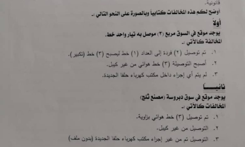 القضاء يفتح ملف فساد الكهرباء بعد تجاهل الإدارة لمستندات المتظلم