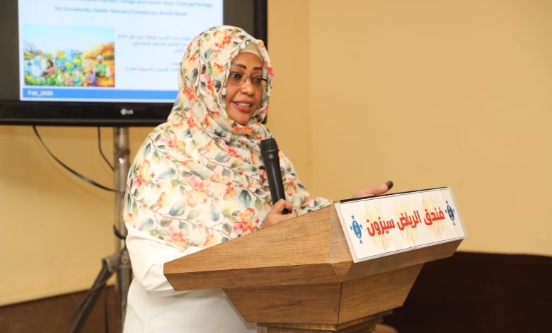 من جانبها اكدت ممثلة للصحة العالمية منى ادريس، ان لتغيير المناخ تأثير كبير على البيئة، والصحة العامة، لهذا جاءت الورشة لمؤامة حزم التدريب، بتمليك المستهدفين من العاملين الصحيين المجتمعيين ومعززي الصحة، الآثار الناجمة عن تغيير المناخ وكيفية التعامل معها، وتحويل المرضى في مناطقهم البعيدة، واضافت ان حزمة واحدة من الأنشطة المدعومة من البنك الدولي (مشروع شير) للسودان، والذي يؤدي إلى دعم المجتمعات في عدة جوانب، وبالتالي مساعدة النظام الصحي خاصة نتيجة الحرب.