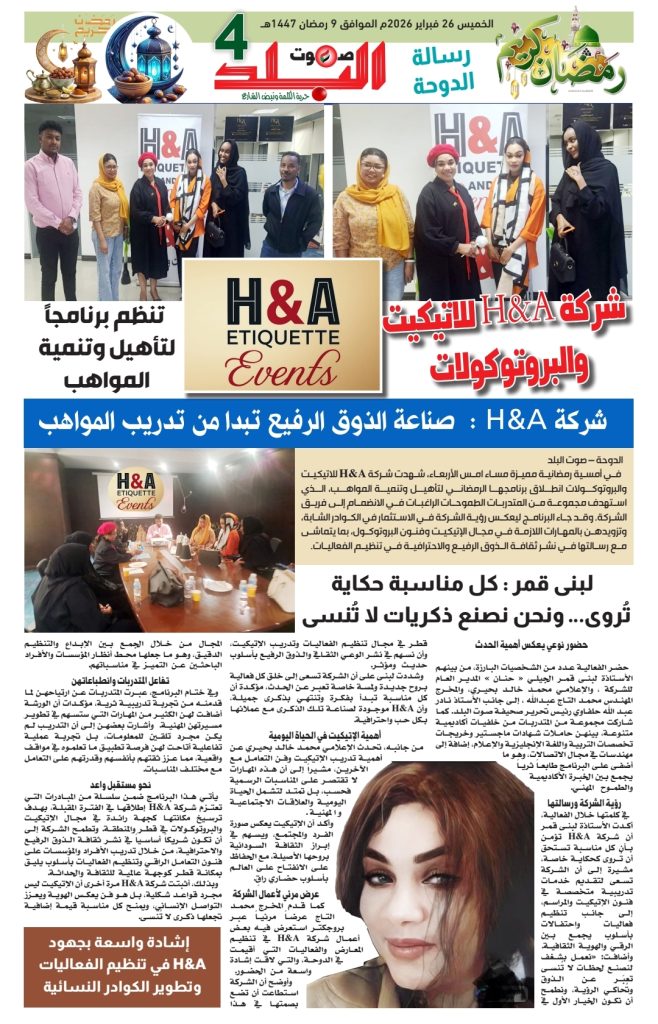 في أمسية رمضانية مميزة مساء امس الأربعاء، شهدت شركة H&A للاتيكيت والبروتوكولات انطلاق برنامجها الرمضاني لتأهيل وتنمية المواهب، الذي استهدف مجموعة من المتدربات الطموحات الراغبات في الانضمام إلى فريق الشركة. وقد جاء البرنامج ليعكس رؤية الشركة في الاستثمار في الكوادر الشابة، وتزويدهن بالمهارات اللازمة في مجال الإتيكيت وفنون البروتوكول، بما يتماشى مع رسالتها في نشر ثقافة الذوق الرفيع والاحترافية في تنظيم الفعاليات.