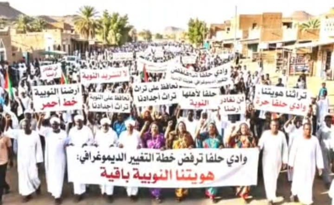 في وقفة احتجاجية كبيرة … أهالي وادي حلفا يرفضون خطط التغيير الديمغرافي ويؤكدون تمسكهم بهويتهم النوبية
