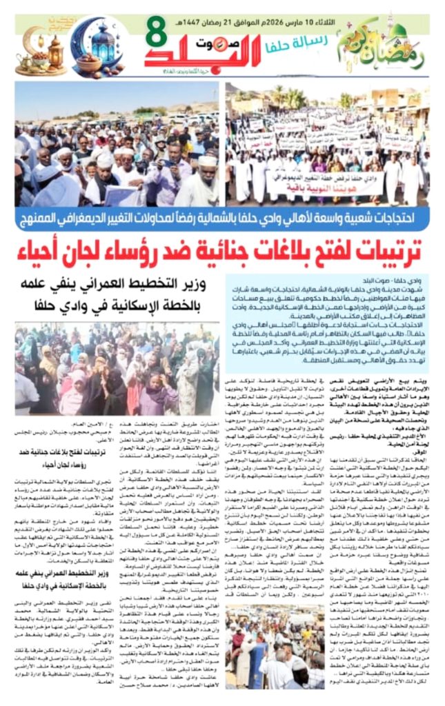 فتح بلاغات جنائية ضد رؤساء لجان أحياء في الولاية الشمالية ووزير التخطيط العمراني ينفي علمه بالخطة الإسكانية في وادي حلفا